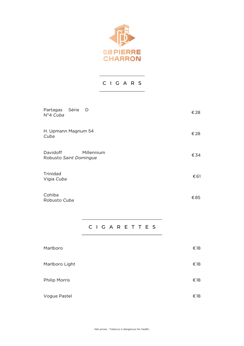 Our team will be happy to present our cigar menu to you and to offer you matching taste pairings.